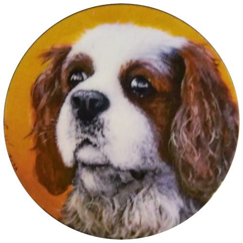 Pyöreä magneetti, jossa pienen, cavalier-rotuisen koiran pää.