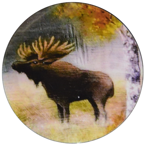 Maalauksista käsinvalmistetut pyöreät magneettikoristeet vaikkapa jääkaapinoveen. Magneetti on pieni ja kevyt puukiekko (halkaisija 4cm ja paino 5g), jonka taakse on liimattu magneettinauhaa. Kaikki magneetit on pintakäsitelty akryylilakalla. Kuvassa on metsämiehen unelmamagneetti. Siinä tönöttää uljas hirvi, isojen sarvien kera, keskellä syksyistä metsää. Usva vallitsee kauttaaltaan, häivyttäen taustaa sumuisesti. Etualalla oikealla näkyy koivun valkomusta runko ja yläreunassa oranssin eri sävyissä olevia puun lehtiä. Maa on usvan peitossa, mutta sieltä täältä pilkahtaa ruskan värejä. Tunnelma on hyvin rauhallisen tyyni, hiljaisuuden voi melkein kuulla kun oikein pysähtyy kuuntelemaan…