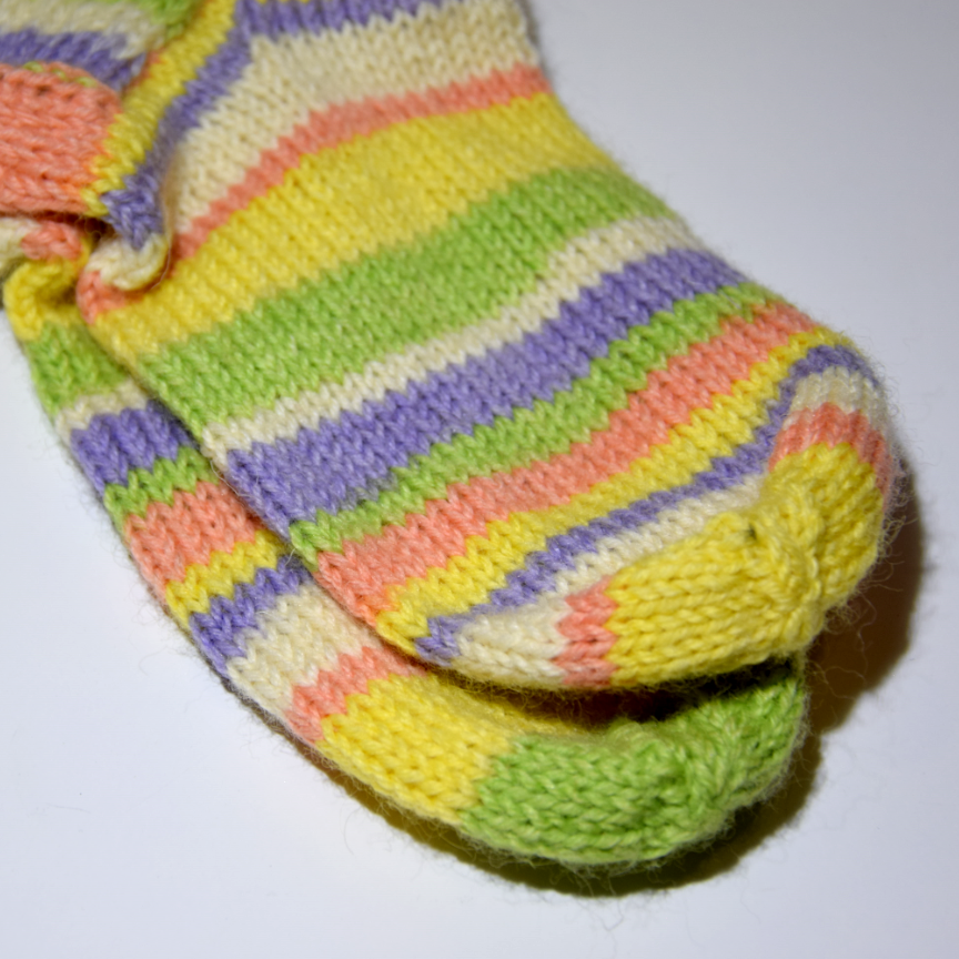 Raidalliset, värikkäät villasukat. Hempeät pastellivärit. Koko n.40